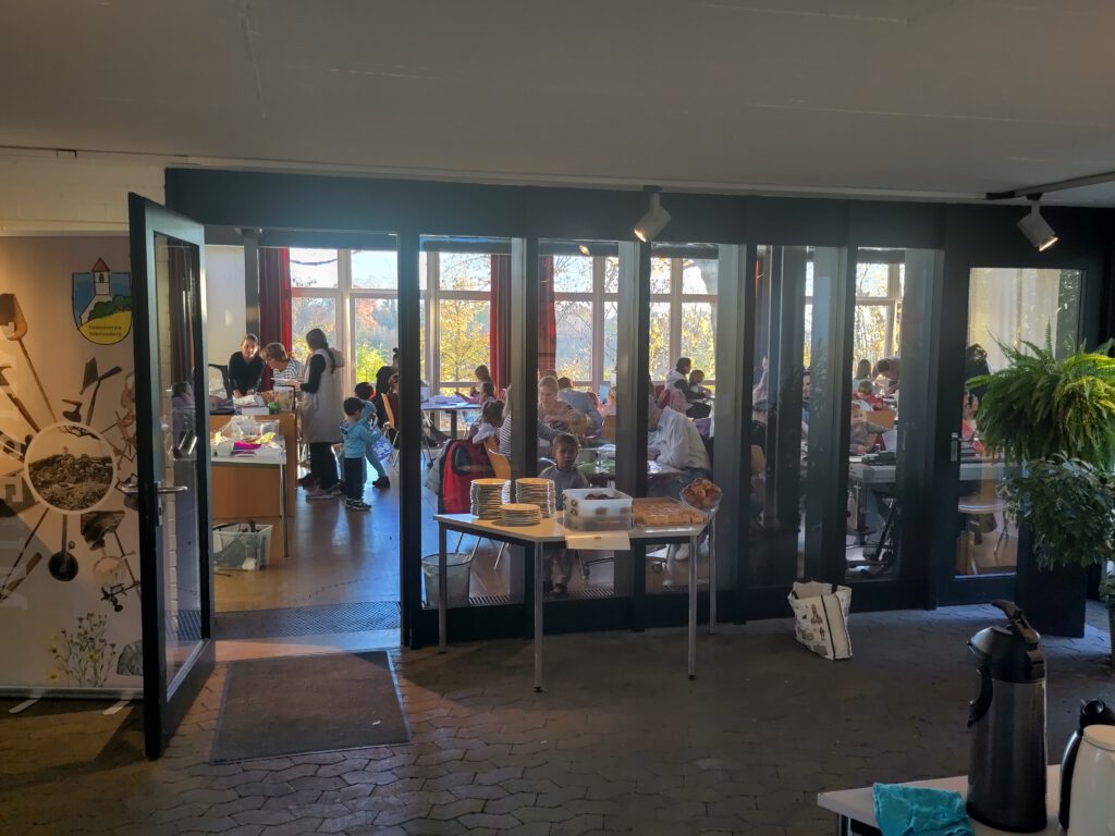 Am 6. November war das Gemeindehaus so gut gefüllt, dass die Kuchen- und Getränkebar auf einen Tisch vereint wurden. Alle anderen Tische waren durch Bastler in Benutzung! Bis 16:45 Uhr kamen noch neue Gäste, die von Jutta und Katharina von der KiTa Baumhaus mit Material und Tipps versorgt wurden. Der Heimatverein kümmerte sich um die Versorgung mit Kaffee und Tee. Der Quarkzucker-Kuchen der Bäckerei Hermann und die Schokomuffins des KiTa-Teams waren im Nu verzehrt. Alle kamen in den gut 2 Stunden auf ihre Kosten. Zum Schluß wurde noch gemeinsam aufgeräumt, da ab sechs Uhr der Raum schon wieder belegt war. Es hat wieder großen Spaß gemacht und wir freuen uns auf nächstes Jahr.